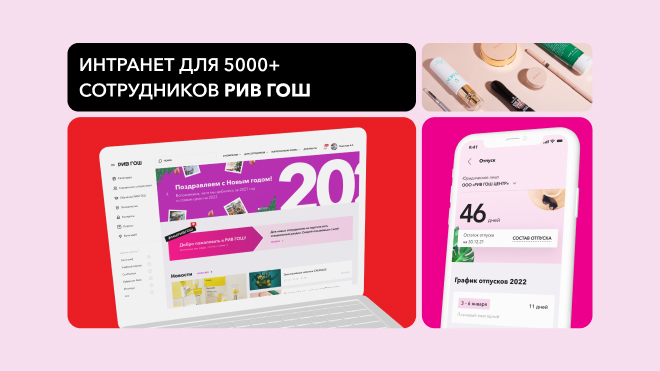 Конечный продукт, с его удобством и функциональностью, запустил рост вовлеченности и удовлетворенности персонала, а визуальное оформление корпоративного портала стало отражением ДНК бренда РИВ ГОШ. Читать кейс →