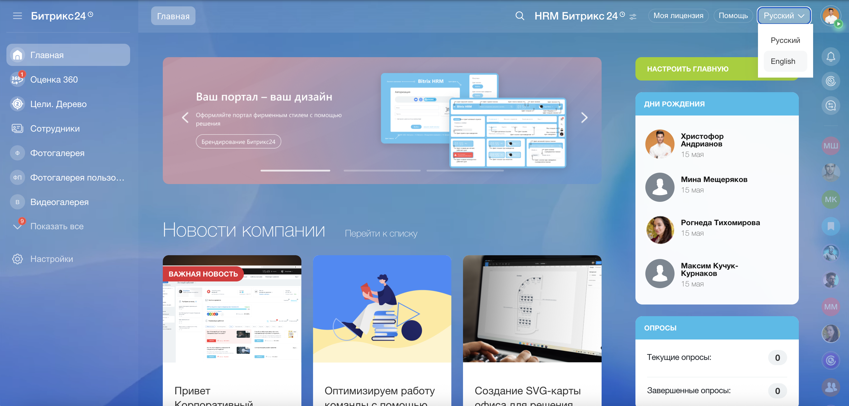 чтобы сотрудники, говорящие на разных языках одинаково комфортно чувствовали себя в одной системе?